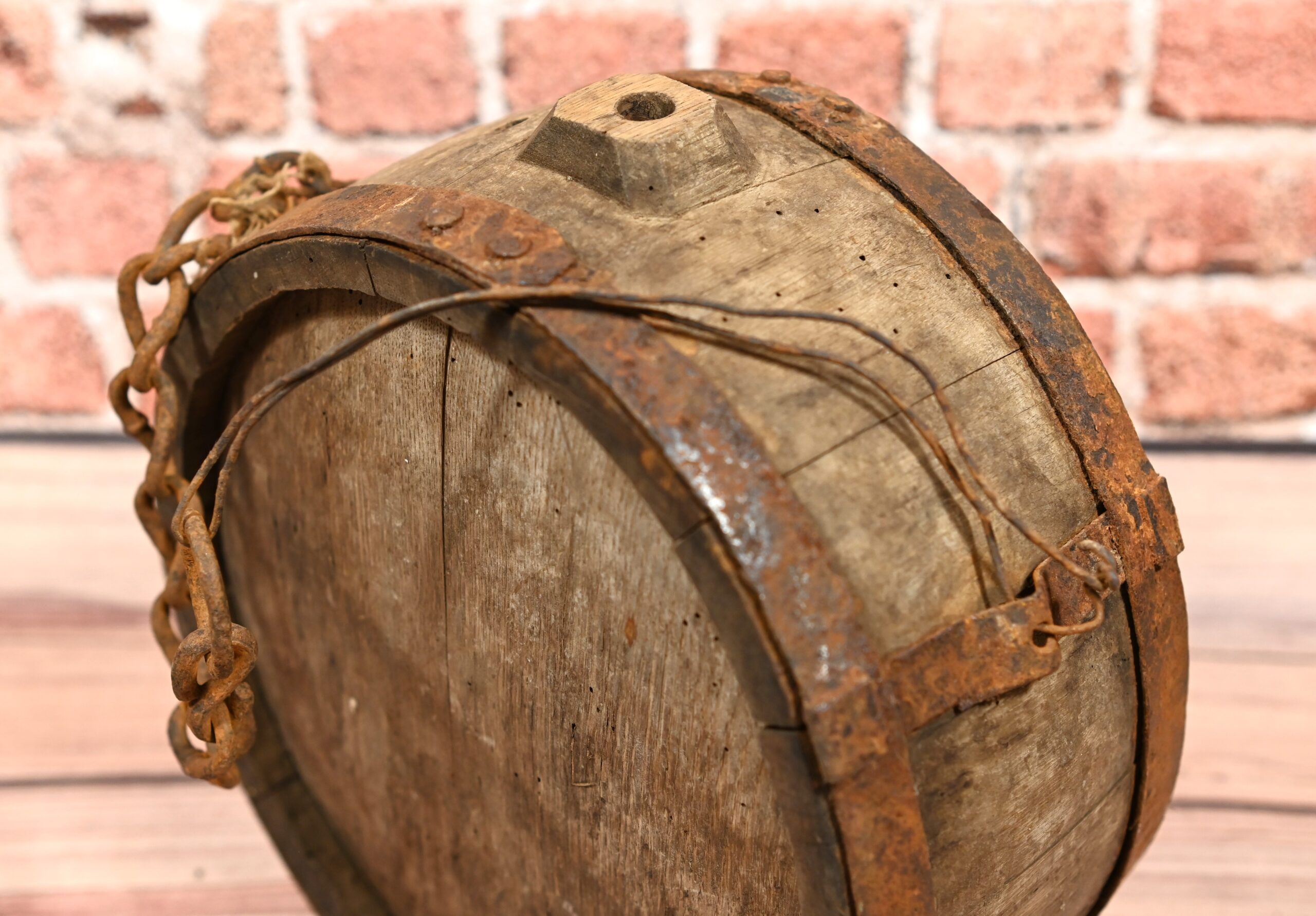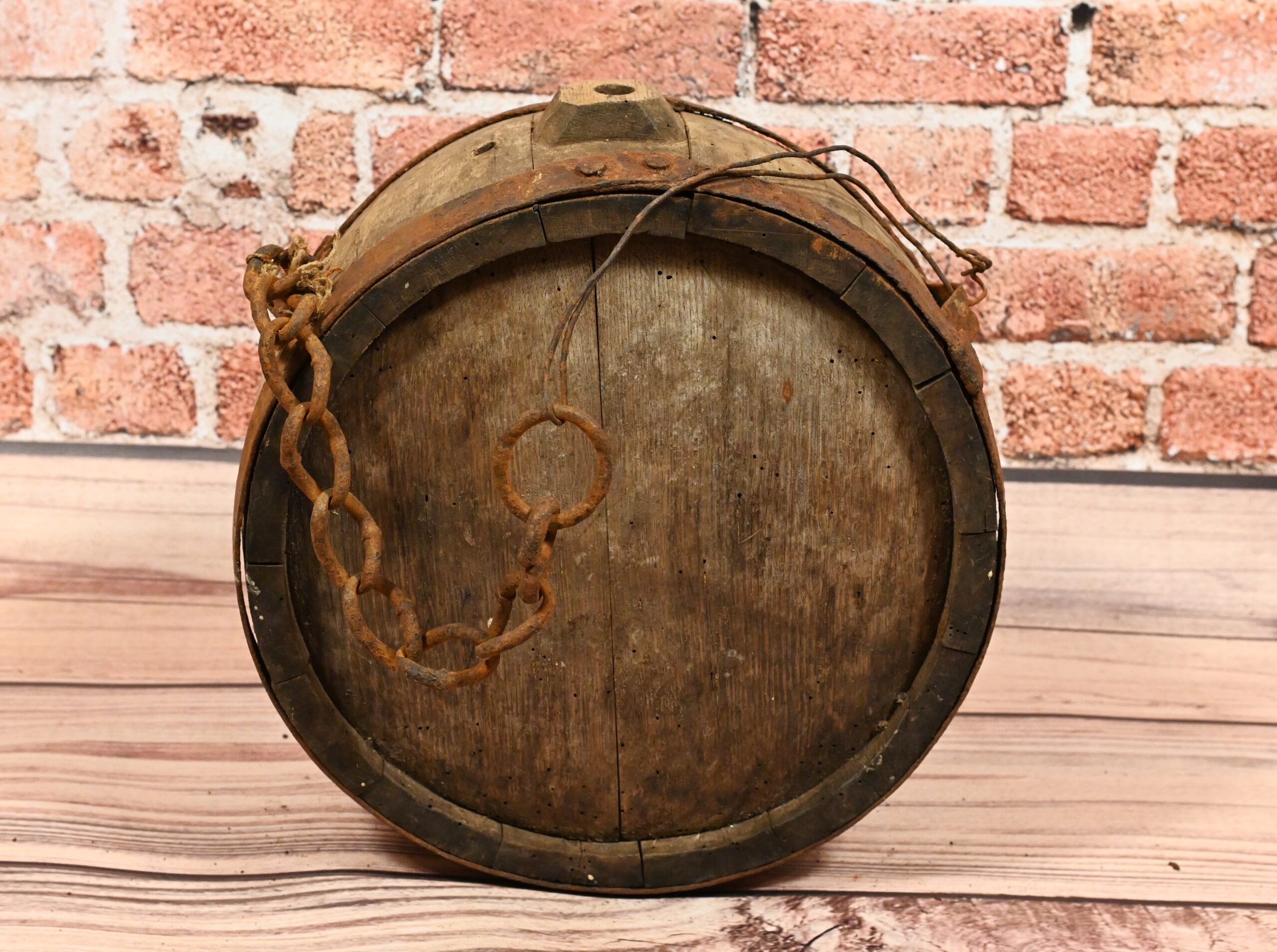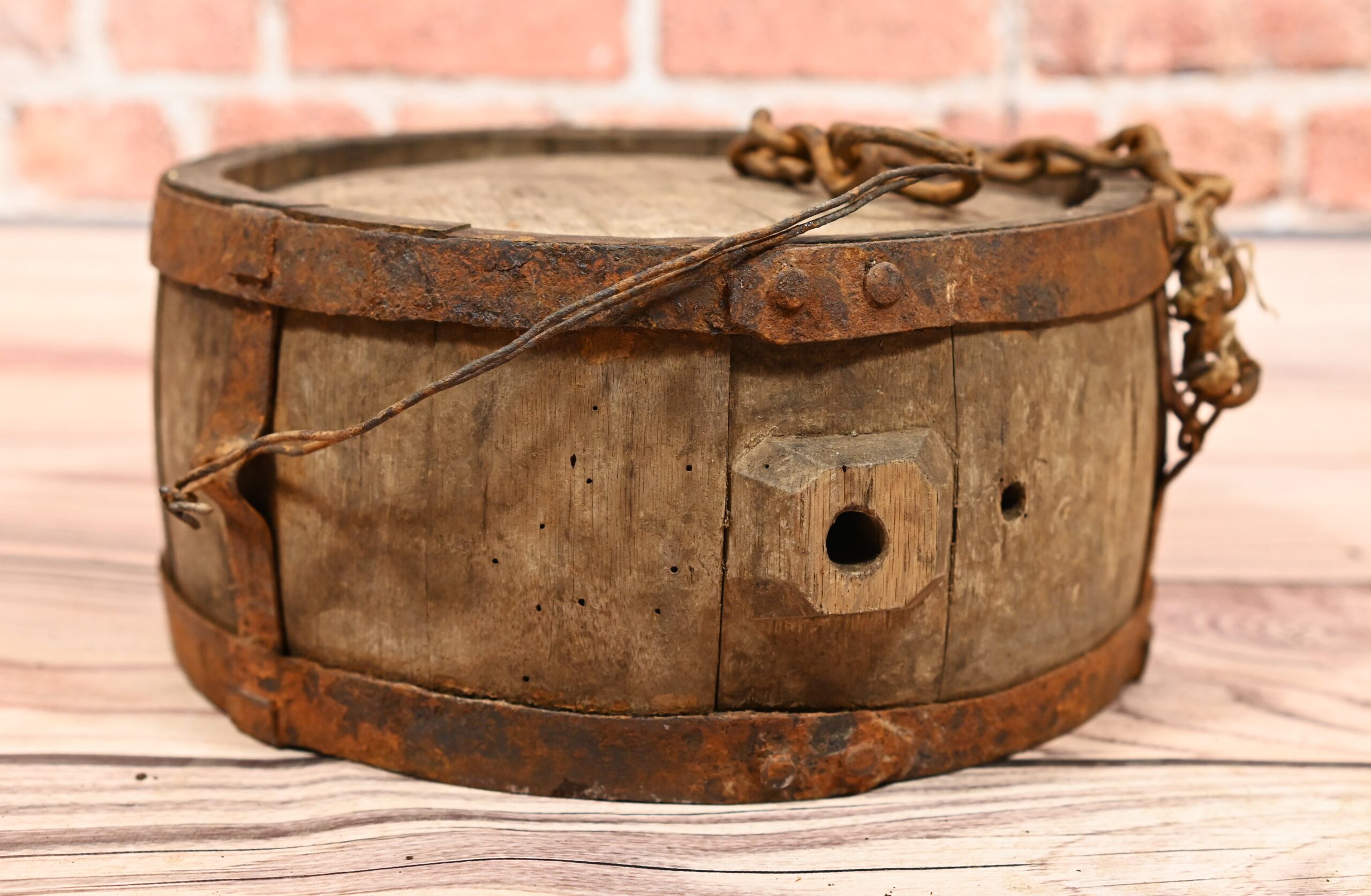 Stary, drewniany pojemnik w stylu vintage. Nosi ślady użytkowania. Wymiary: średnica38cm; wysokość 16,5cm.