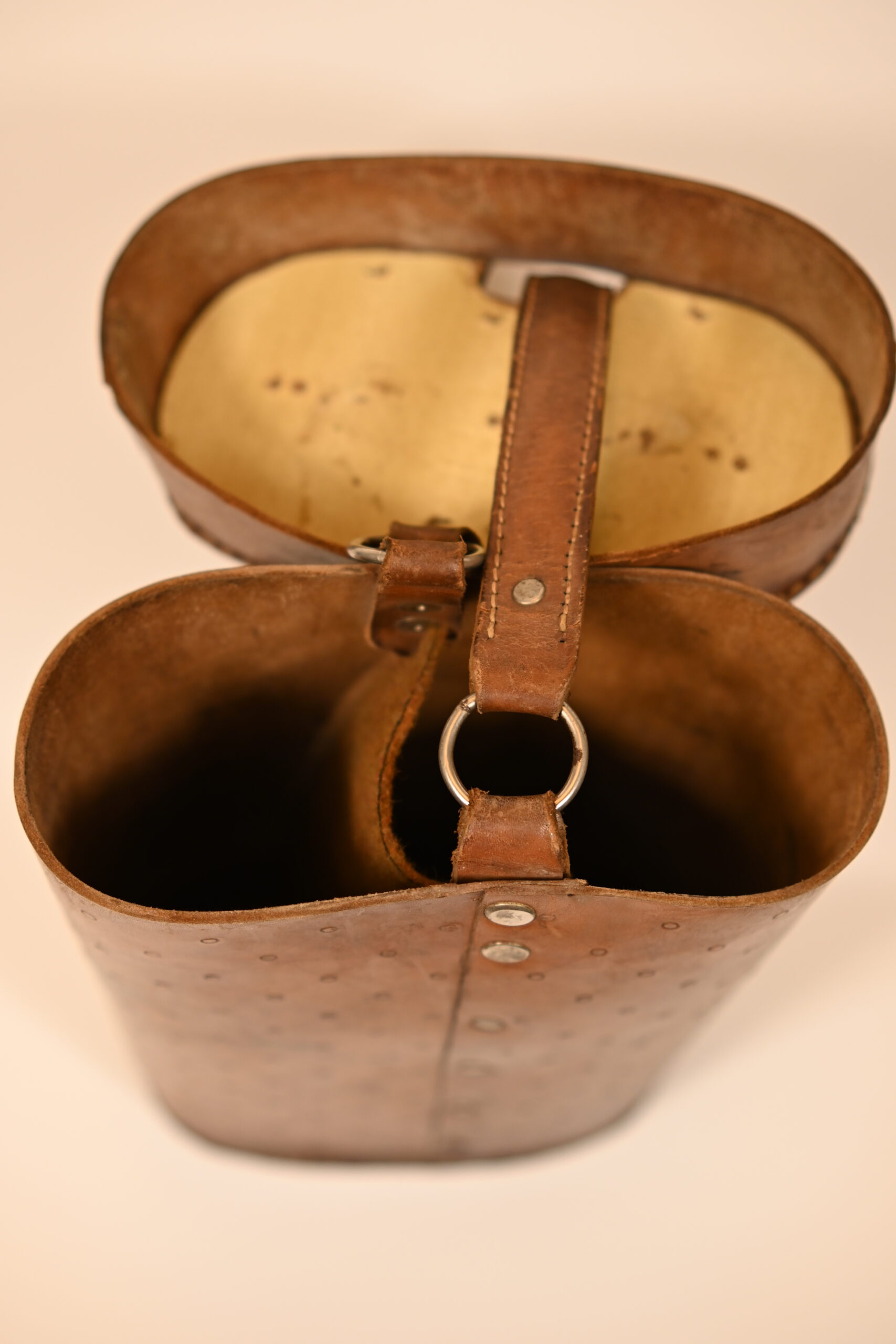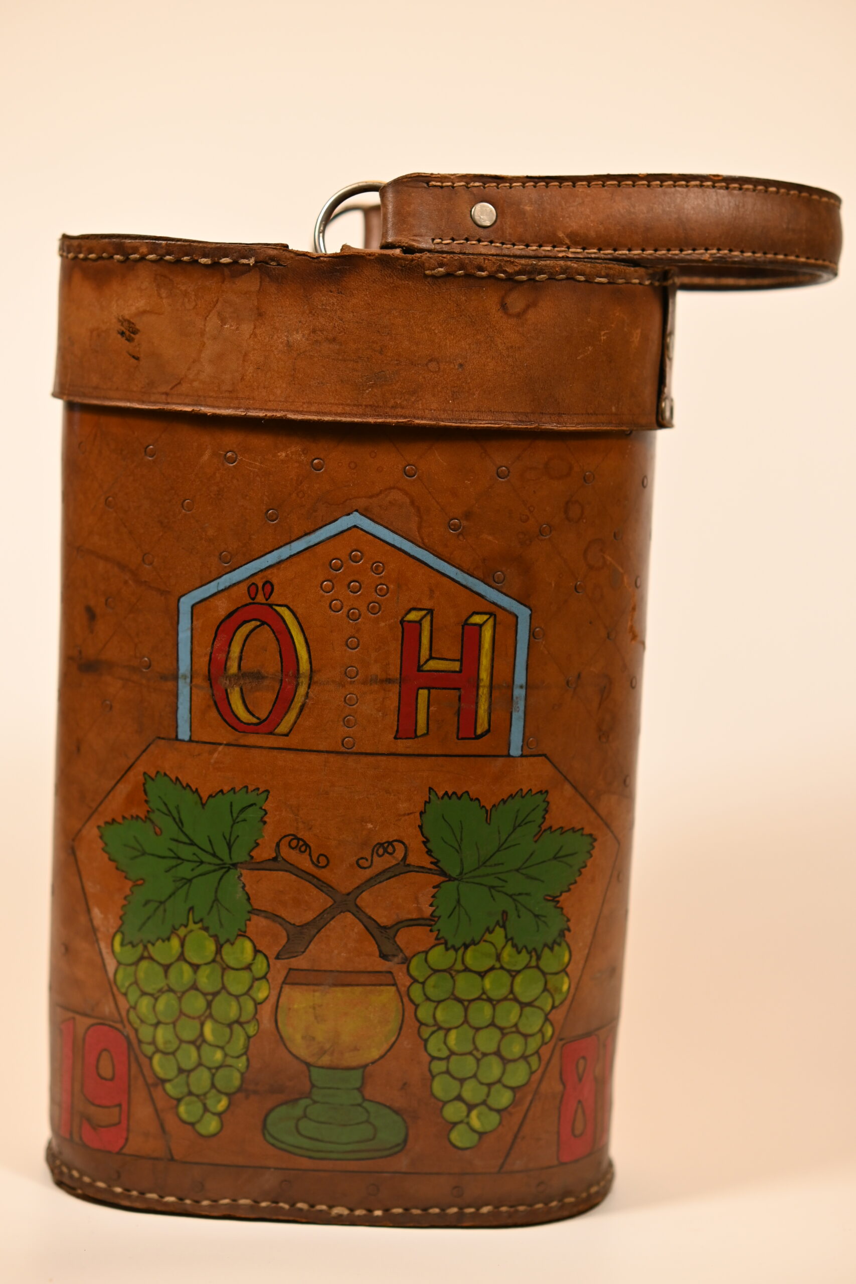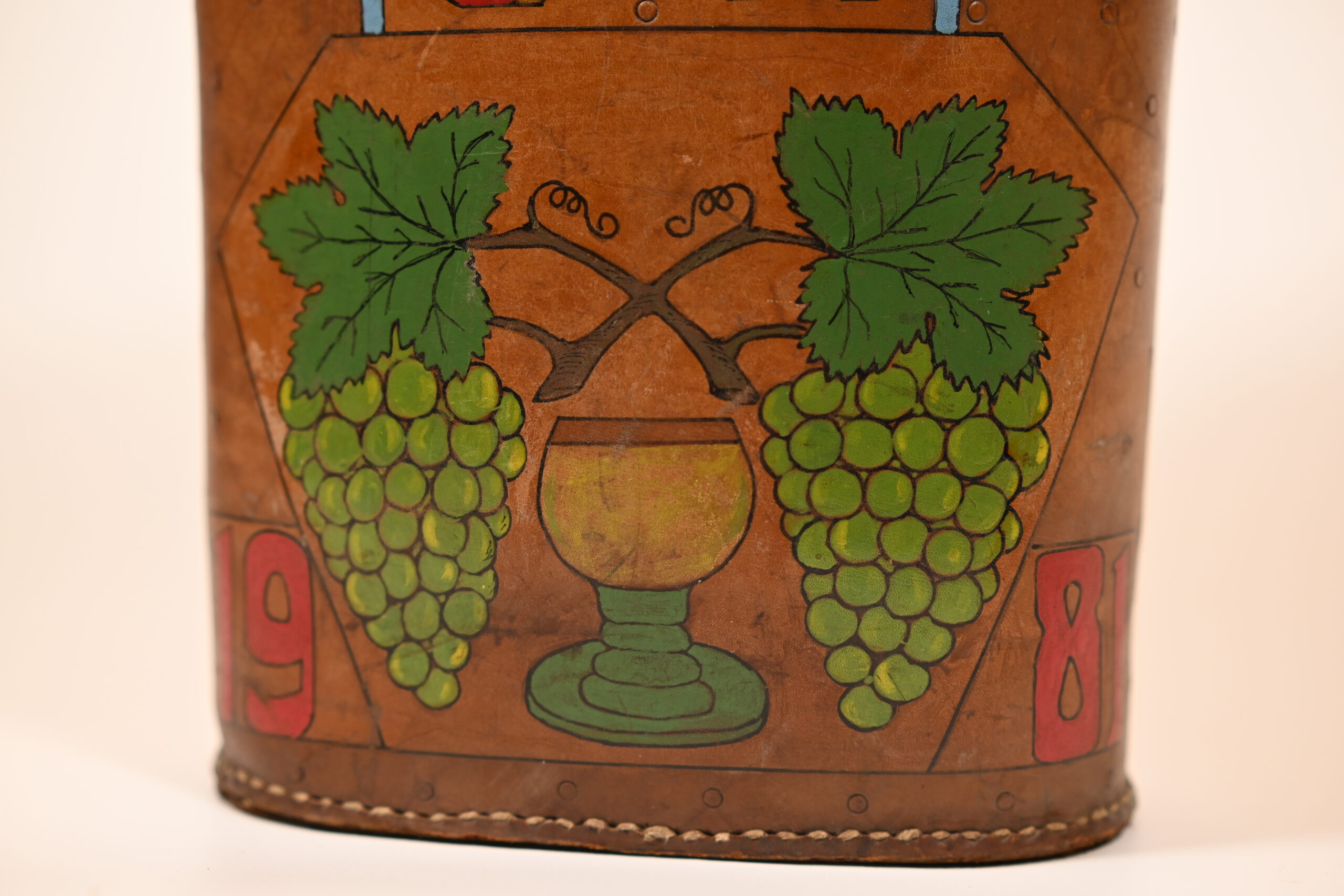 Austriacki, skórzany pokrowiec do noszenia butelek z winem. Ręcznie malowany. Lata 80-te.