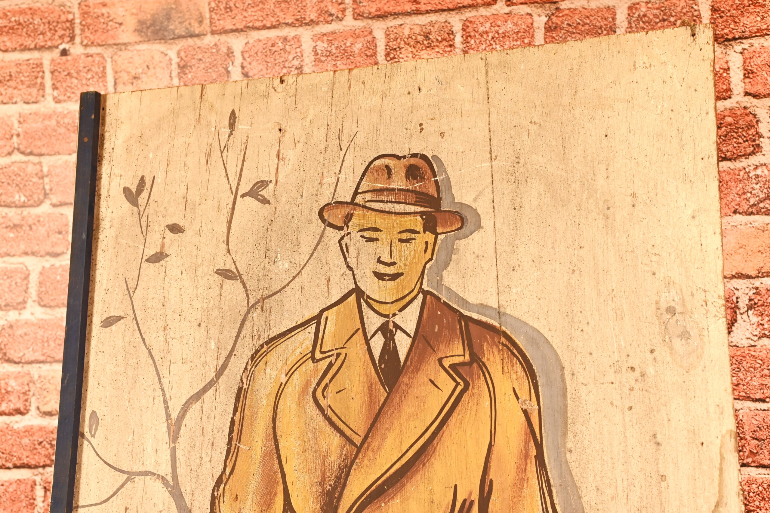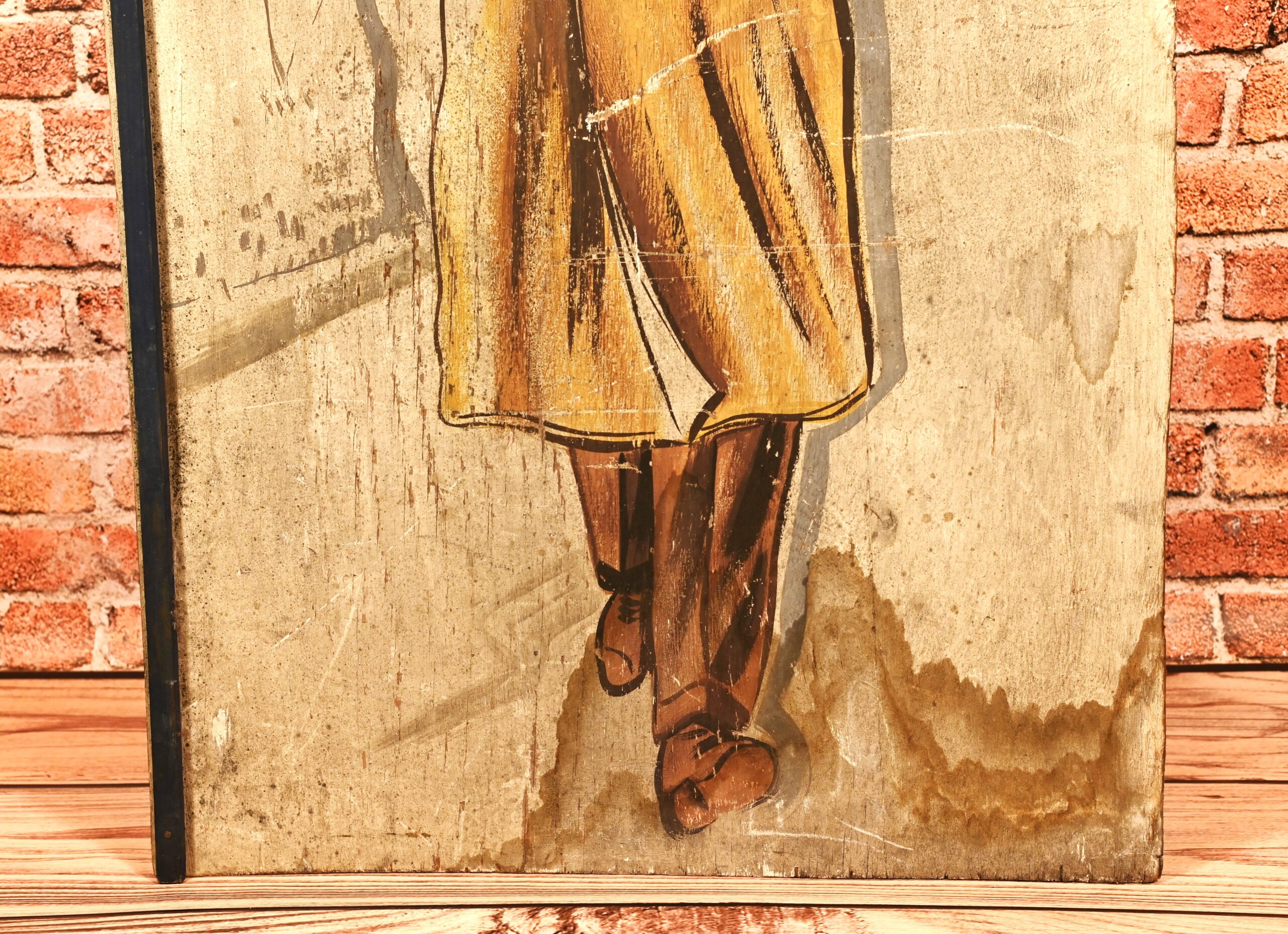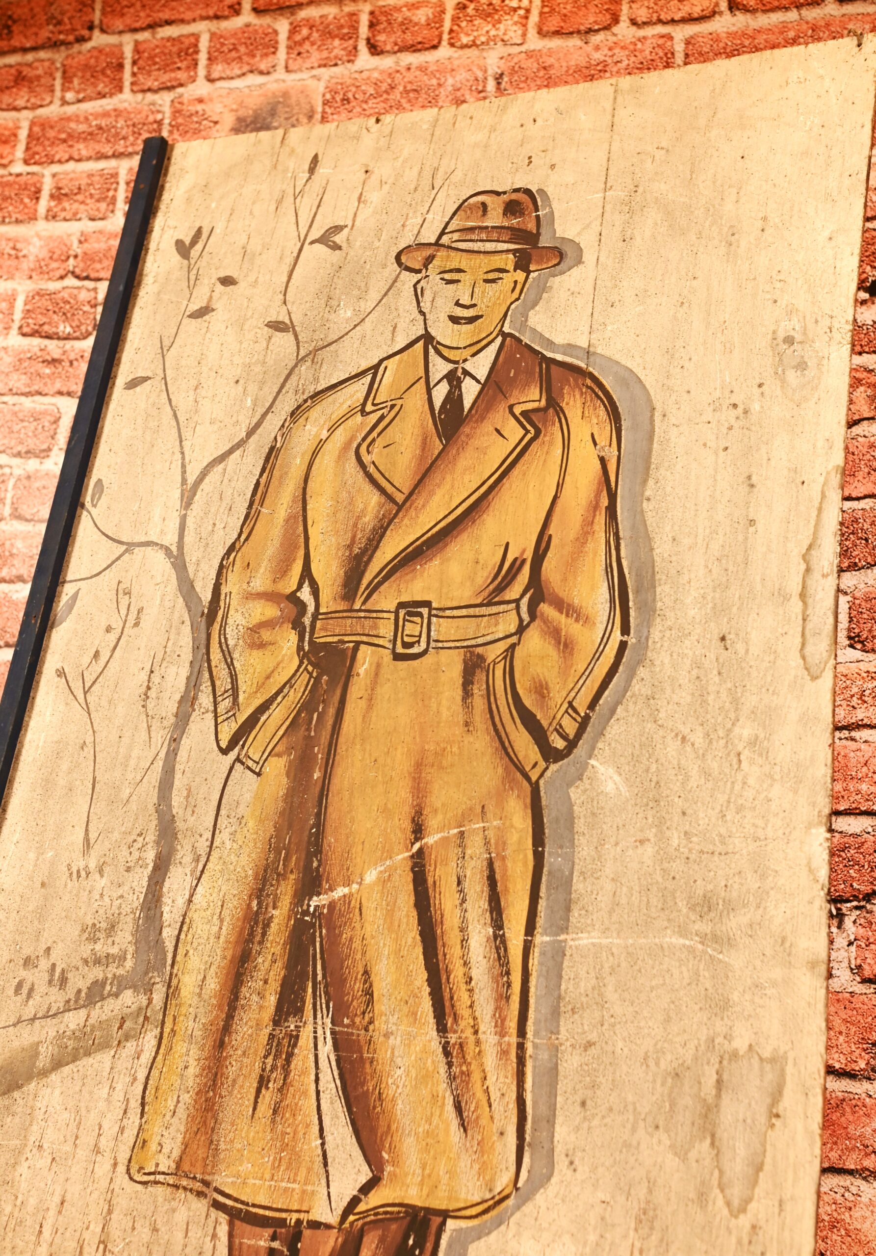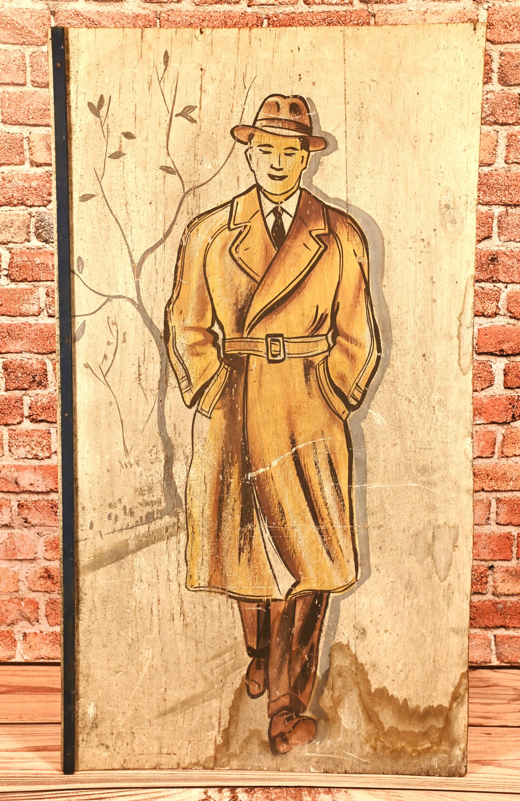Stary, drewniany szyld sklepu z odzieżą męską. Kraj pochodzenia Polska Wymiary: wysokość – 110cm, szerokość – 60,5cm. Stan dobry, widoczny za zdjęciach – zarysowania, przebarwienia, nacieki.